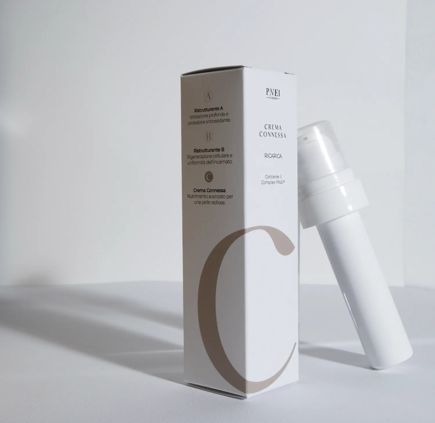 La REESTRUCTURANTE C CREMA CONEXIÓN (Connessa) es un tratamiento avanzado para rostro y cuerpo que fusiona la ciencia de la regeneración cutánea con una nutrición profunda. Su fórmula magistral integra Niacinamida para unificar el tono del cutis, Ácido Hialurónico para una hidratación multinivel y Aceite de Semillas de Moringa, un potente antioxidante natural. Gracias al exclusivo COMPLEX PNEI y a su alto contenido en Vitamina C, esta crema exalta la luminosidad natural y retrasa los signos del envejecimiento, logrando una piel vital y resplandeciente. Además, introduce un sistema de recarga (refill) eco-friendly que reduce el impacto ambiental, mantiene la fórmula siempre fresca y ofrece un ahorro inteligente sin comprometer la elegancia del vidrio.